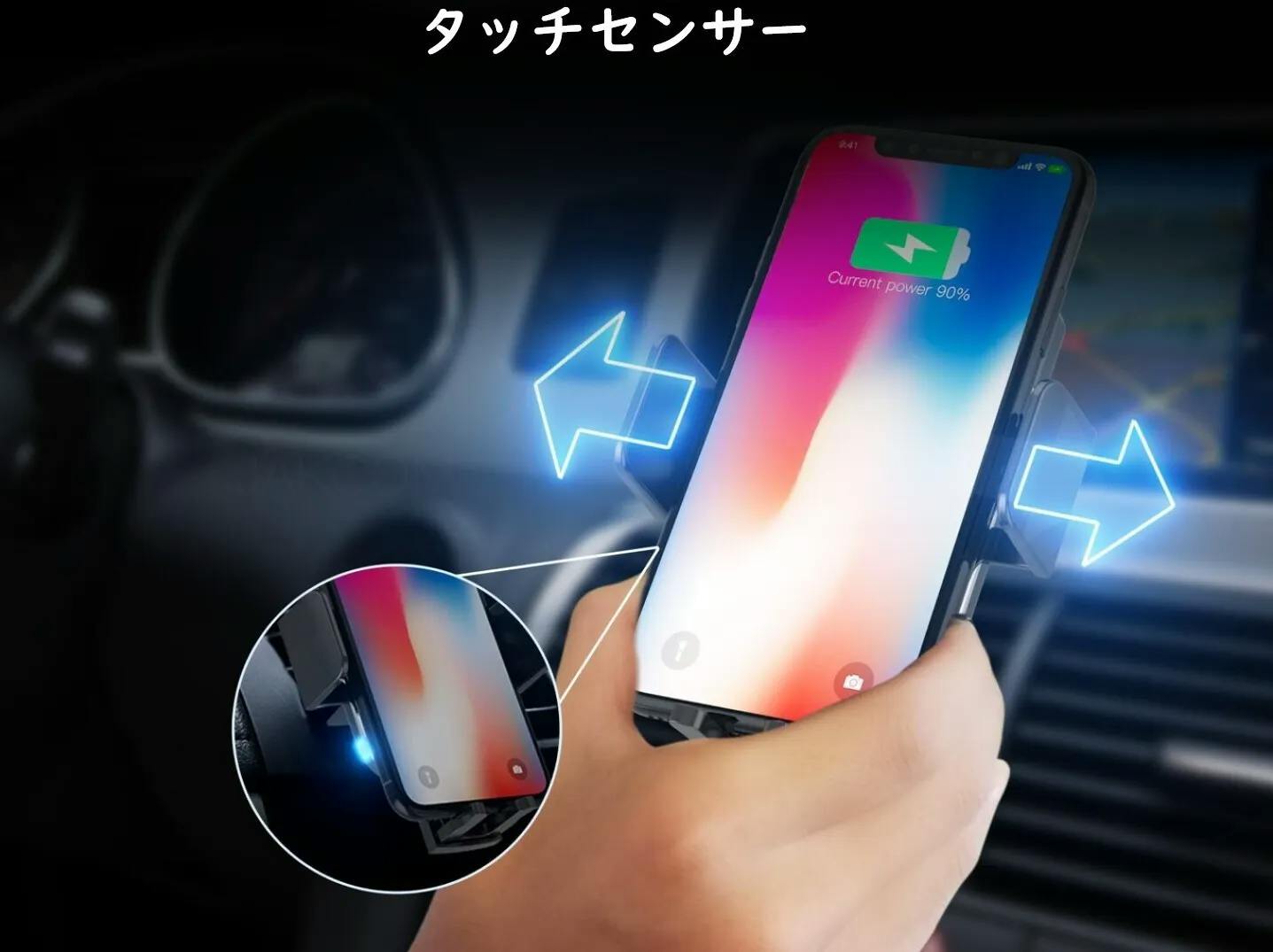 タッチセンサーが製品下部に付いており、指で軽く触れるだけでクランプが自動で開き、スマートフォンのロックが外れます。