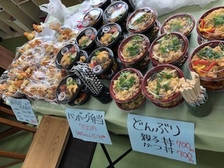 月2回の日曜マルシェでは、採れたて畑野菜や、地産地消の仕出し弁当、手作りの特産品販売など、地域の方が多く出店協力してくださいます。