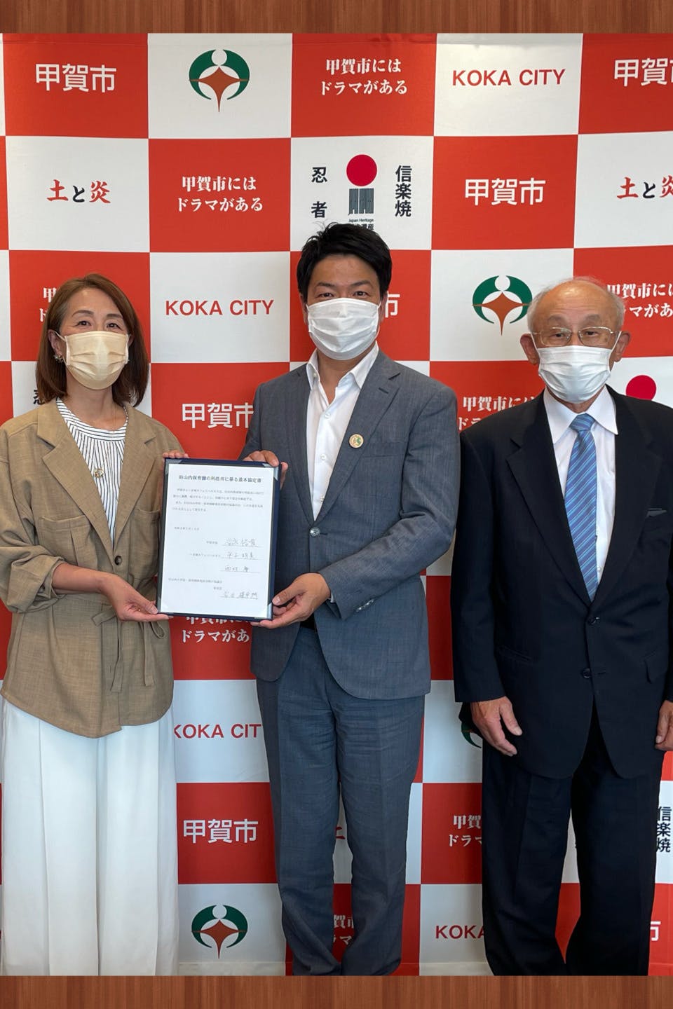 吉田権栄門様(甲賀市長と調印式の写真:右が吉田様)より応援メッセージをいただきましたのでご紹介いたします。