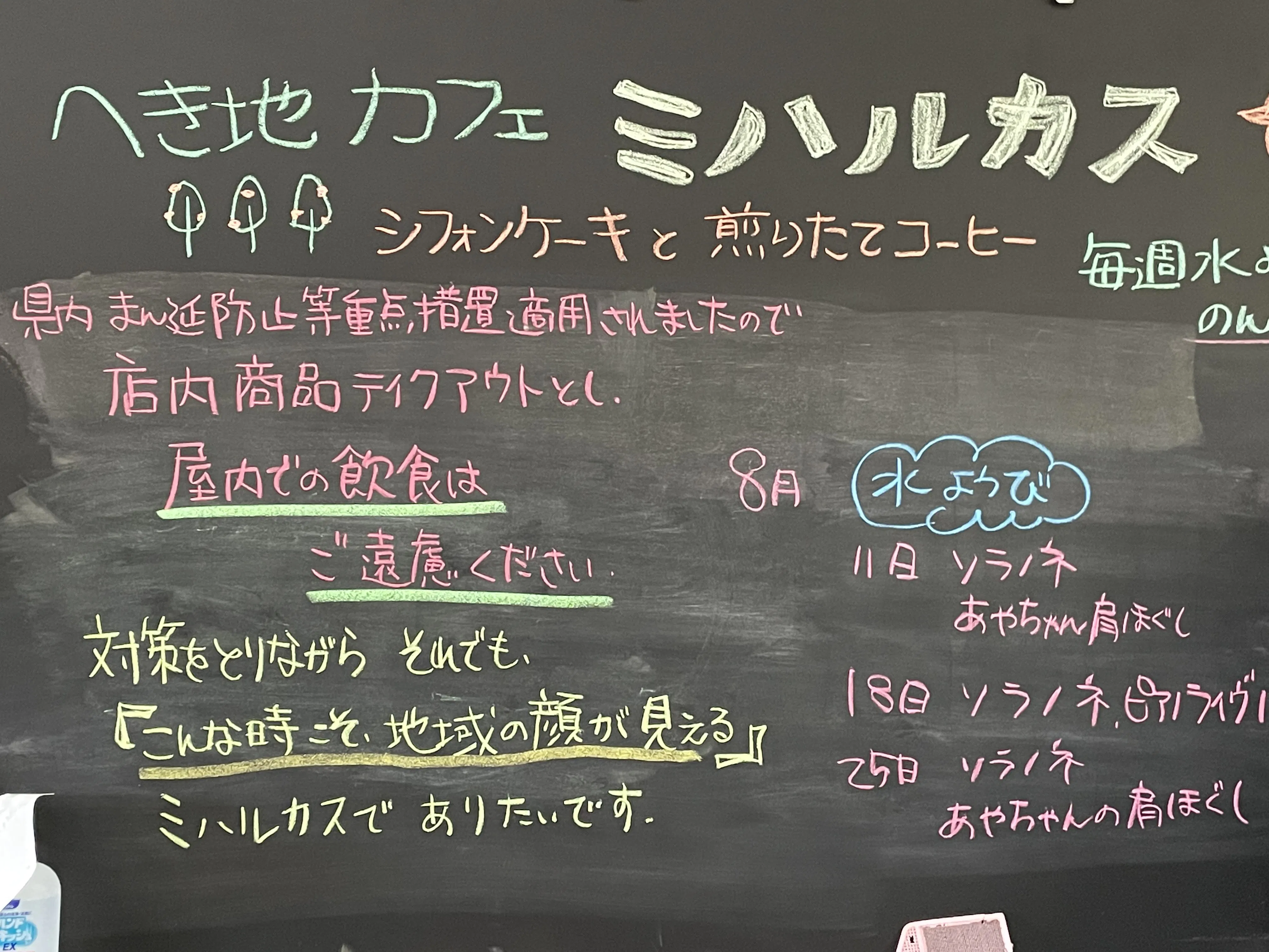 昨年から何度も活動自粛を経験してきたミハルカスでは、すでに出店の店舗数を減らし、充分なスペースを開ける、全てテイクアウトメニューなどの対策をとっておりましたが、
