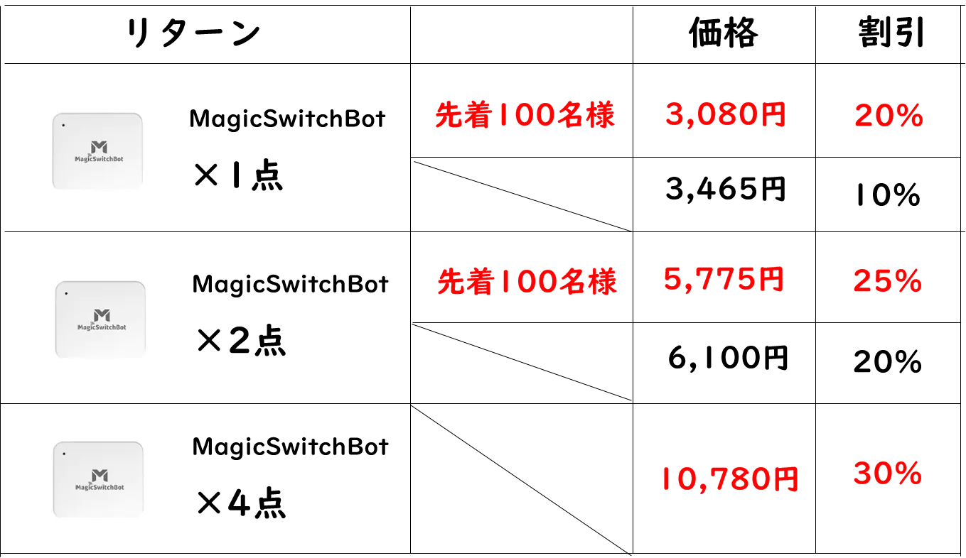 ※ リターン価格とは別にCAMPFIREのシステム利用料として
