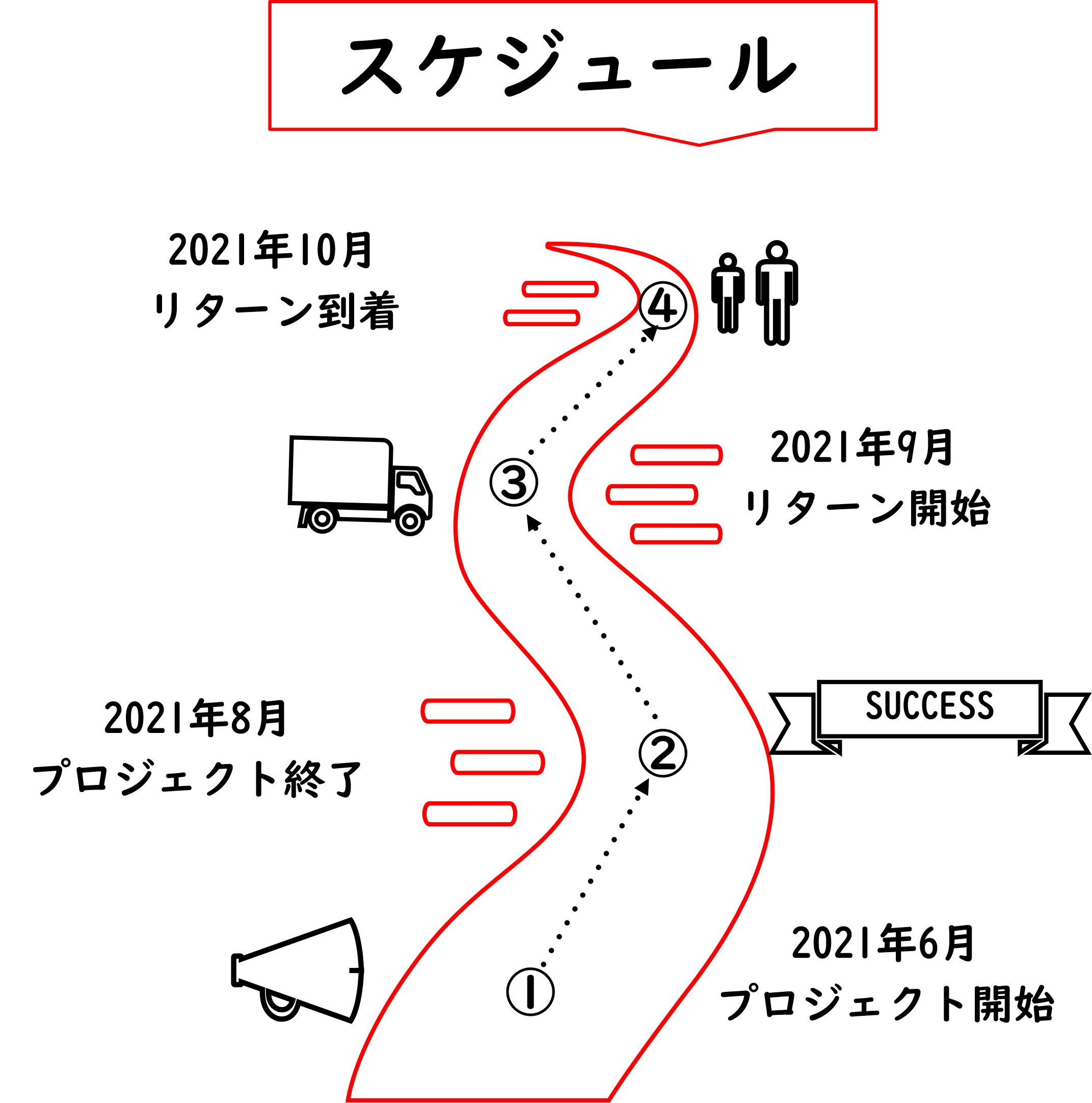 ◯ 引渡し時期: 各リターン詳細に記載の発送予定月を引き渡し時期とします。但し、開発・生産状況によって遅れが生じる場合がありますのでその際は当プロジェクトページ内の「活動報告」または購入者へのメール等で連絡します。
