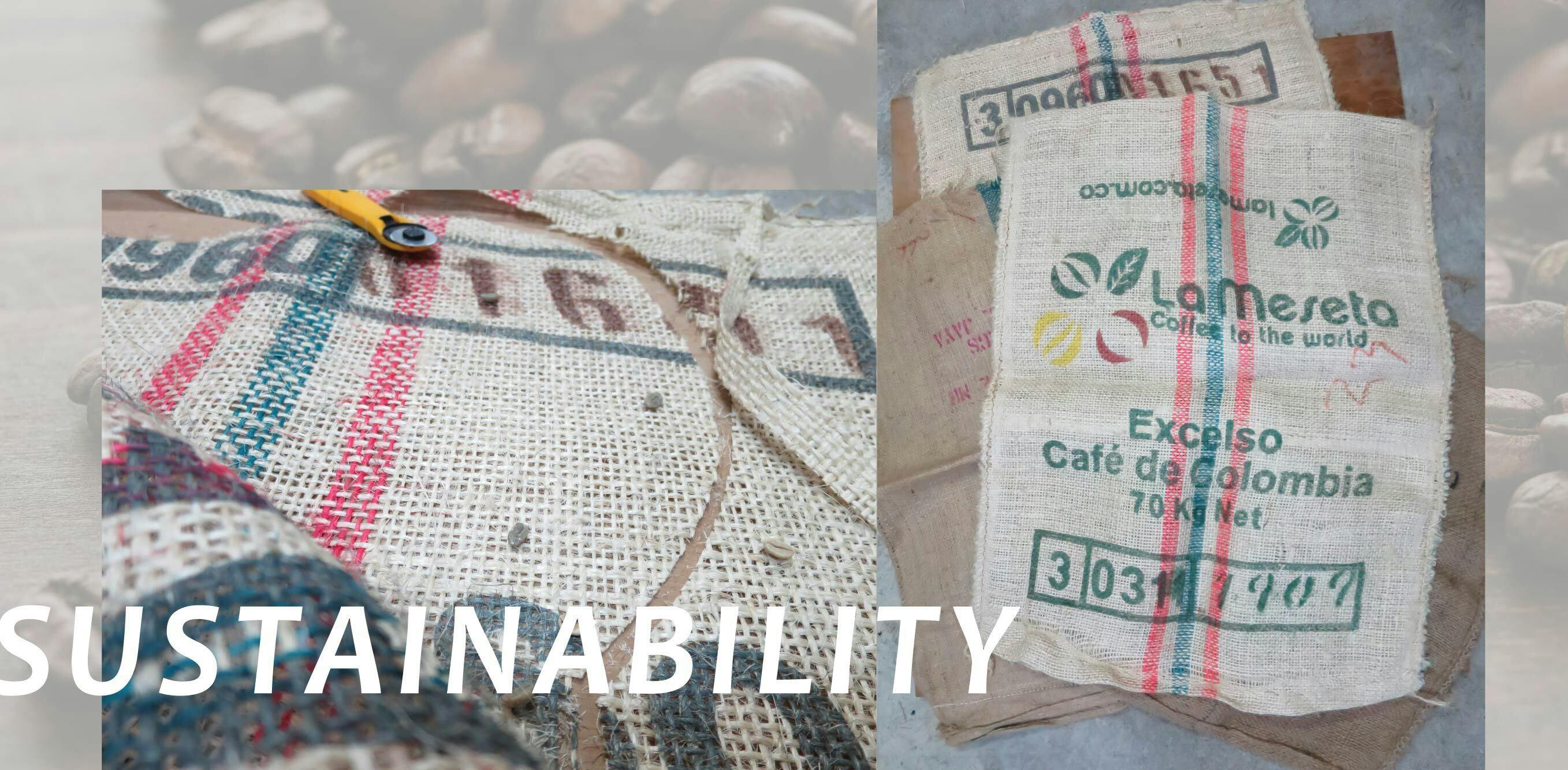素材は、コーヒー豆の輸送に使われる麻袋をアップサイクルしています。