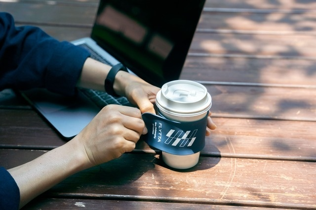 シリコン製ドリンクスリーブは、ドリンクのカップに巻きつけてご使用ください。