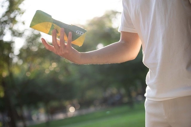 バッグ内に付属のドリンクスリーブを差し込むことで、軽い力で自動的に巻き上げることが可能。バッグを畳む時間はもう必要ありません。