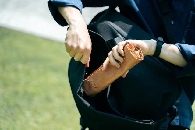 クラフト紙のような質感と落ち着いた色合いで高級感があり、ちょっとした荷物を持って出かける際のサブバックとしても違和感なく使用可能です。