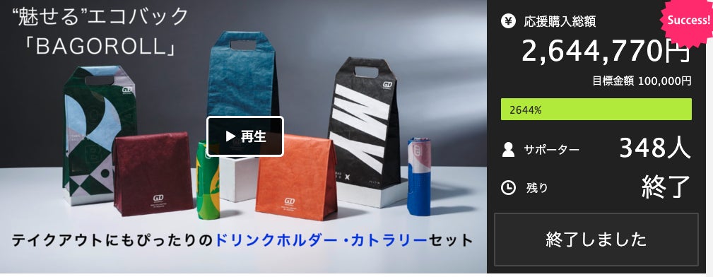 2020年に誕生したBAGOROLLは、海外のクラウドファンディングにおいて4000人以上の支援を集め、国内クラウドファンディング第1弾でも、たった1ヶ月で250万円超の支援をいただきました。