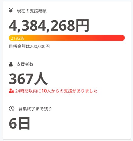 この数字はサポーターの皆様からご支援いただいたLight Discの合計支援額です。