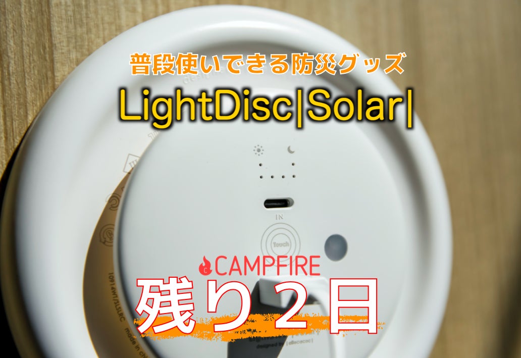 『あったらいいなをカタチにする。』たくさんのサポーターのみなさまから、『こんな充電器があったらいいなと思っていました。』というお声をいただいています。Light Discとの出会いは、海外の展示会でした。どちらかというと、たくさんの注目を集めている商品ではなかったですが、見た瞬間に災害が多い国、日本にはこの商品が絶対に必要だと確信しました。そこから様々な改良を加え、現在のLight Disc Solarのかたちが完成しました。防災を普段の生活に取り入れることの大切さ、スマホの充電を切らさないことが災害時には重要であること、明かりを探すことからはじまる避難は危険と隣り合わせだということ、意識くても普段から対策できる防災グッズの重要性、電源がいらないどこでも使えるエコな充電器、充電がいつでもMAXであることの安心感、たくさんのあったらいいなをカタチにしたのが【Light Disc Solar】です。そんな想いが、たくさんのサポーターのみなさまに届くことが大変嬉しいです。残り1日、迷っている方は、ぜひ一度CAMPFIREで詳しくご覧くださいませ。https://camp-fire.jp/projects/view/445816