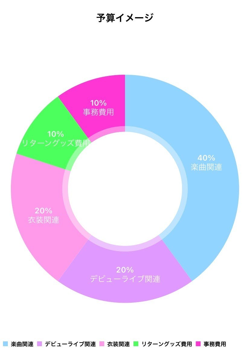 楽曲関連、衣装関連、デビューライブ関連、リターングッズ制作費、事務費用の資金にさせていただきます!