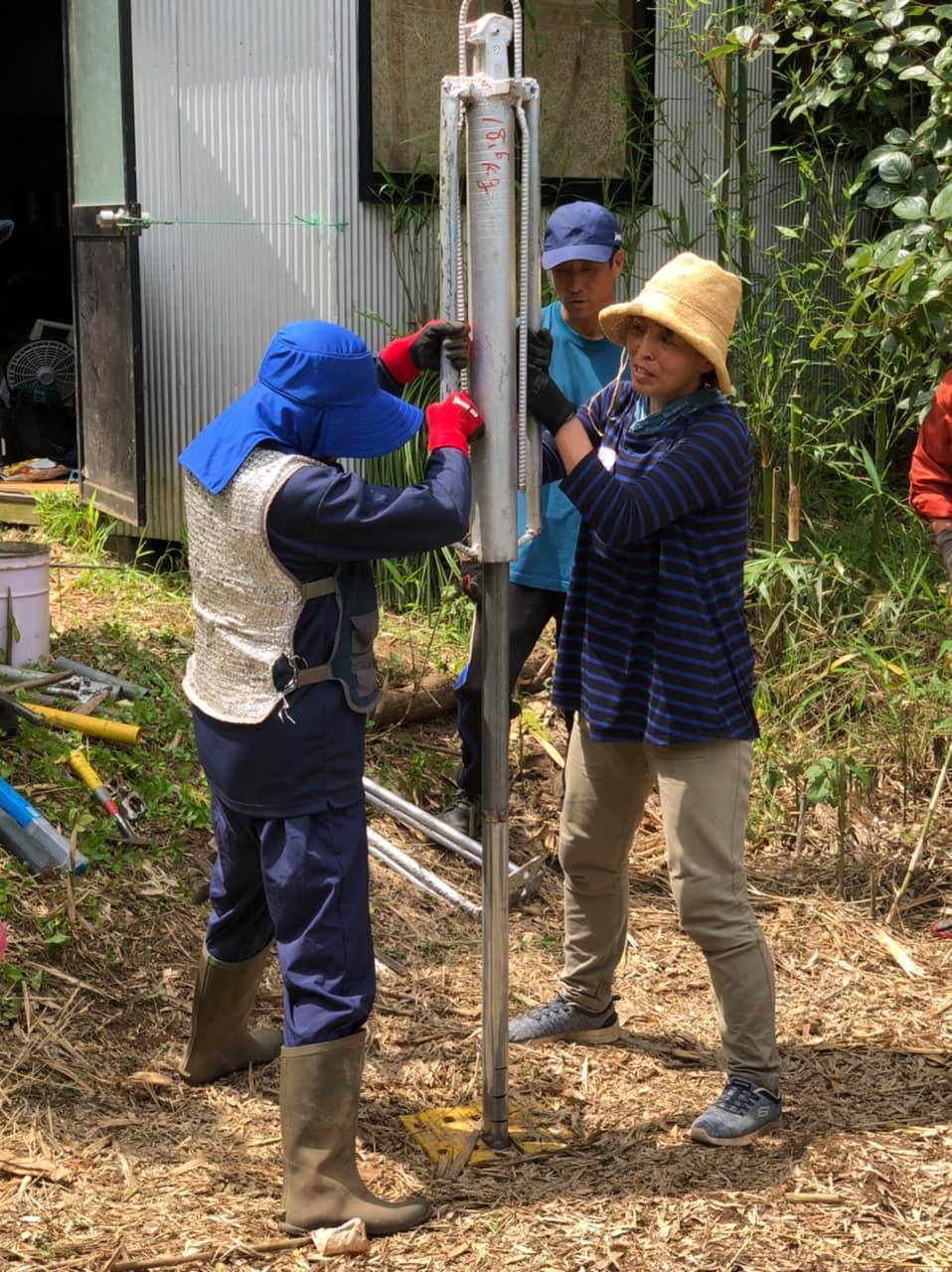 暑い中、みんなで作業して、一度は水が出たものの、