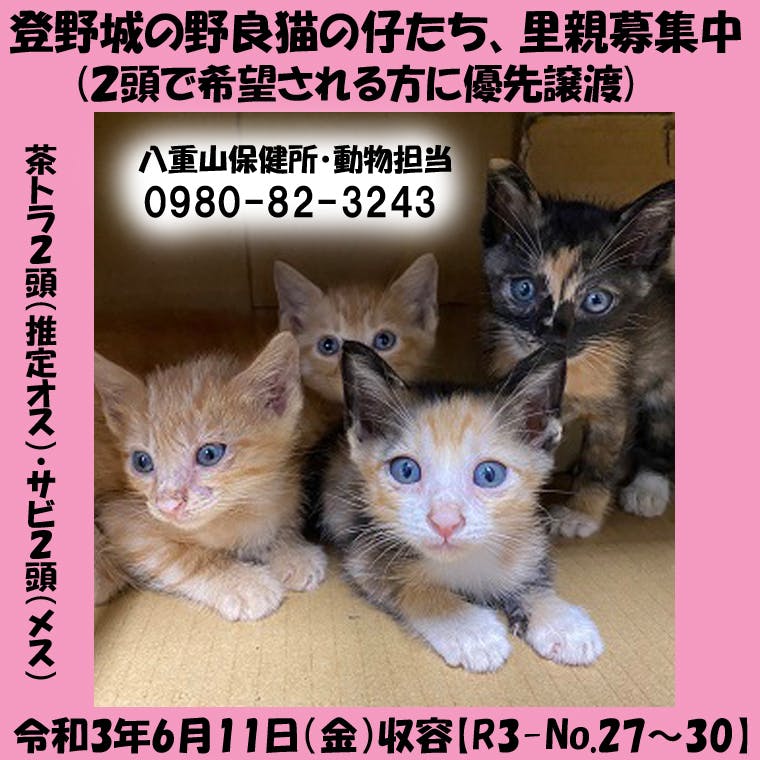 乳飲み子ではなかったので、ミルクボランティアのところには行かず保健所に居ます。