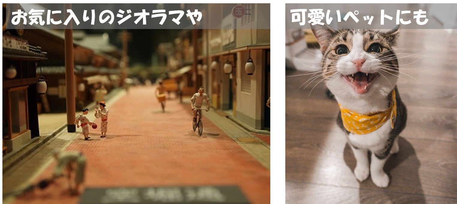 お気に入りのジオラマや可愛いペットの撮影にも使えます。