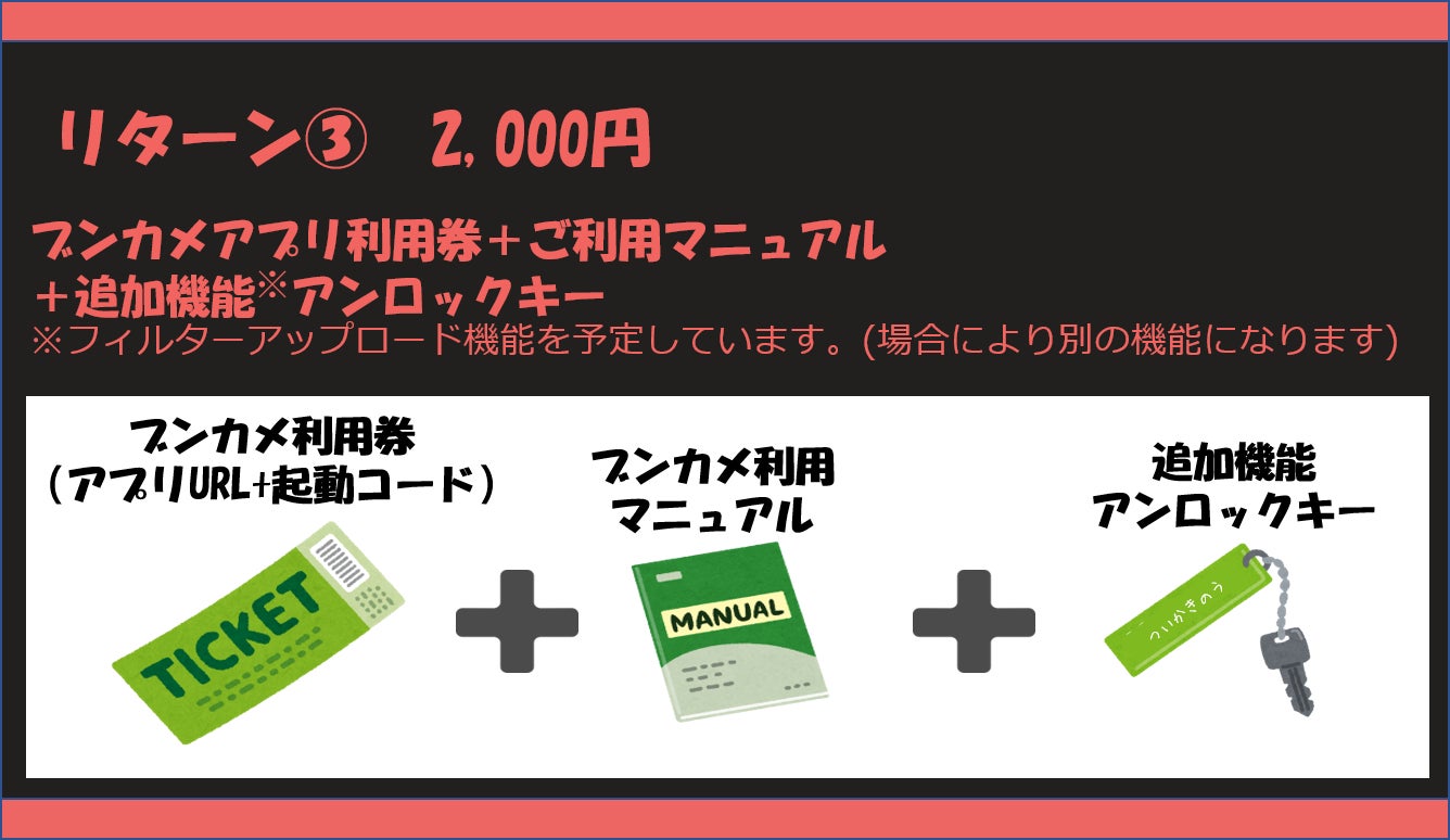 (より楽しみたい方にはリターンでフィルターアップロード機能をご用意しています)