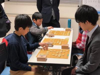 プロ棋士からの直接指導に真剣な表情で取り組む子どもたち