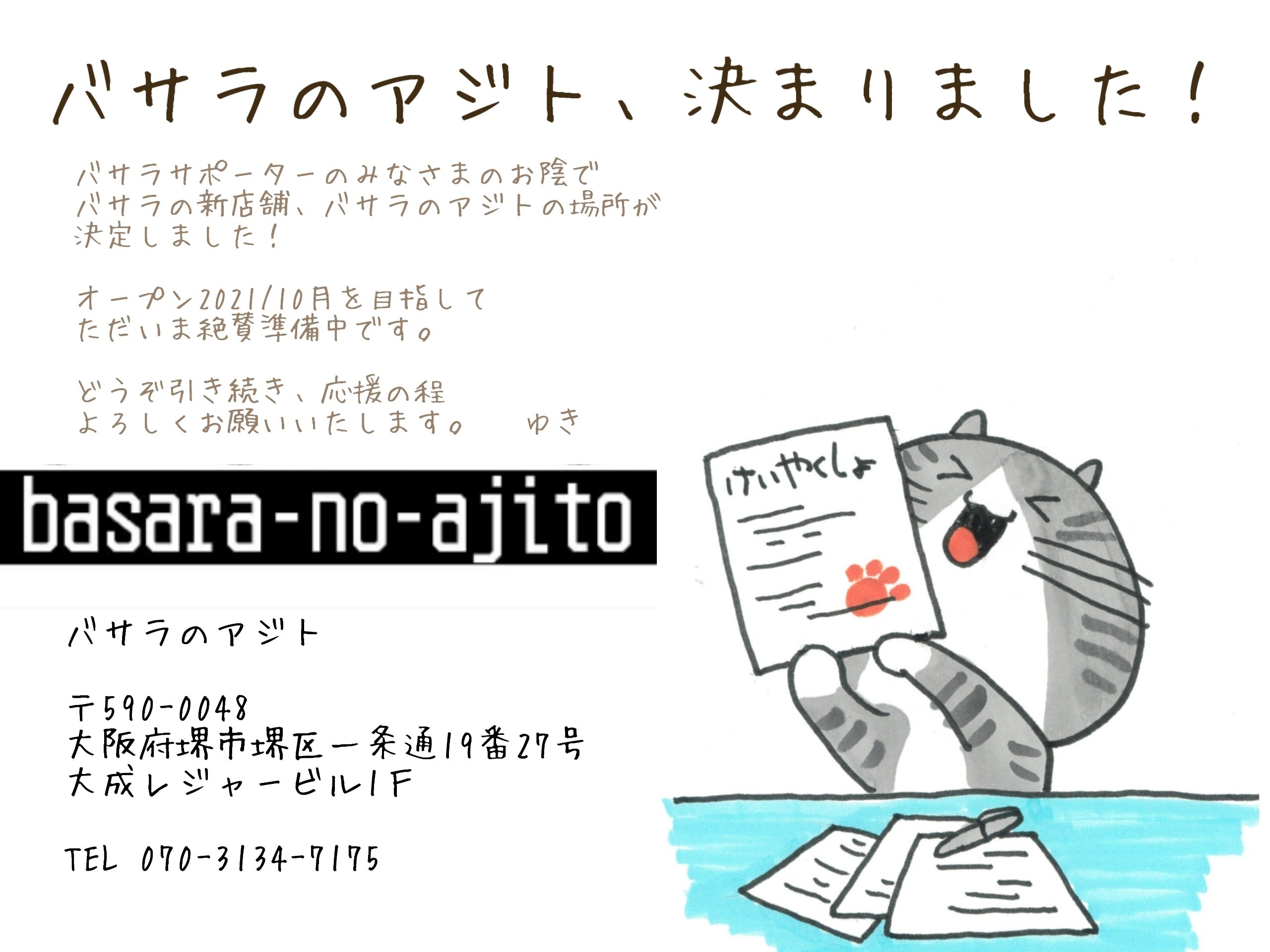 2021/09/07 21:34みなさま、ありがとうございます!バサラの新店舗、バサラのアジトの契約が無事完了いたしました!これから10月オープンに向けてたくさんの作業をしていきます。どうか引き続きよろしくお願いいたします!リターンのお返事も、確認しながら手配していってますので楽しみにしていただけたら幸いです。(まだの人はご連絡お待ちしておりますね)では、また続報します。バサラのアジト〒590-0048大阪府堺市堺区一条通19番27号大成レジャービル1FTEL 070-3134-7175 もっと見る