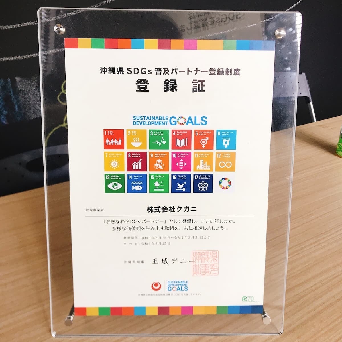 SDGsは2030年に向けた世界の指標ですが、株式会社クガニは脱炭素や陸の豊かさを守ろうなどといった、SDGsへの取り組みを行なっている企業として先日おきなわSDGsパートナーとして登録されました。