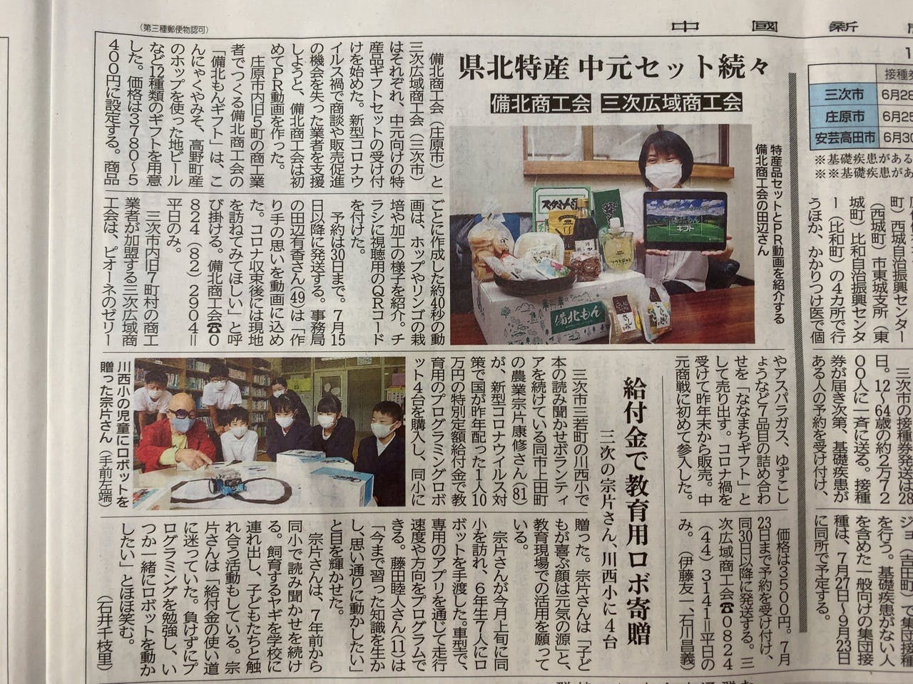 6月25日の中国新聞朝刊にお隣の三次広域商工会とともに掲載されました!