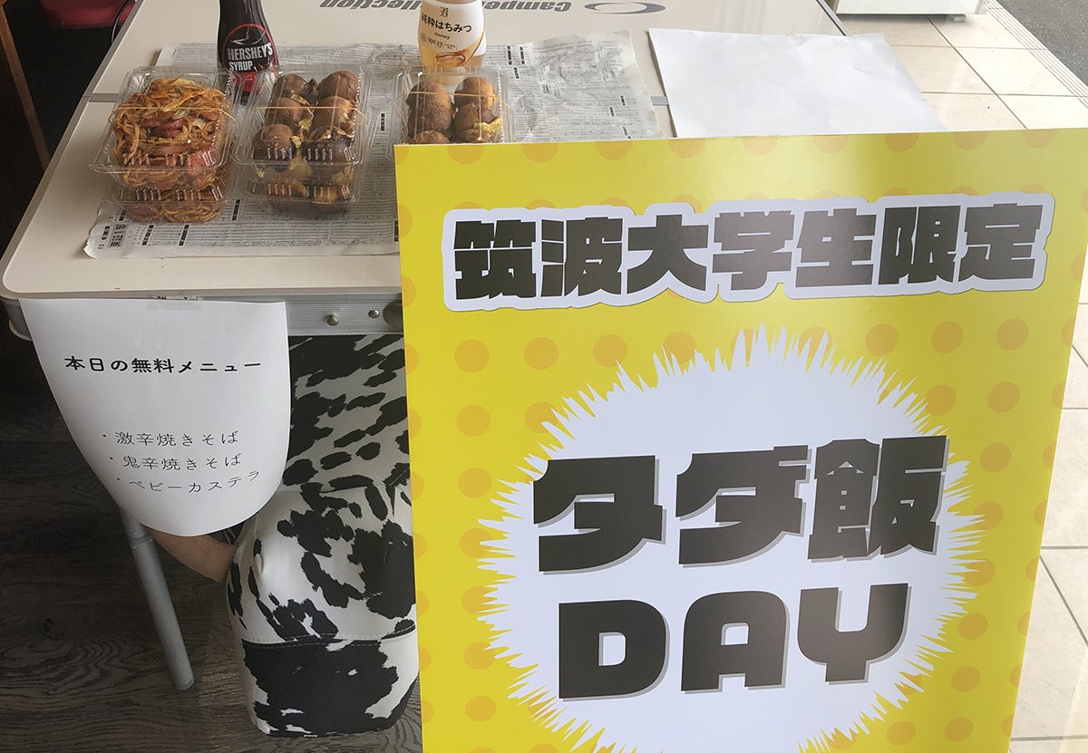 お腹を空かせた筑波大生向けに、「焼きそば」「お好み焼き」などボリュームがあり、安く食材が手に入るものを無料で提供しようと、「TADAMESHI PROJECT」を立ち上げました!!!