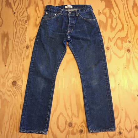2018/03/01 16:24こんにちは。尾道デニムプロジェクトです。 しばらく間が開いてしまいましたが、オリジナルデニムの製作は着々と進行中です! 今日は1/4からサンプルを穿き込んでいただいている鉄工所の職人さんのデニムの経過報告をしたいと思います。 もう1本と1週間毎に交互に穿いているので、実際には約1ヶ月の穿き込み日数ですが、セルビッジや裾のアタリもしっかり付いてきました。 生地のオンスは約14.5ozとしっかりしているのに柔らかくて穿きやすい、と職人さんにも高評価をいただいています。 フロントボタンや革パッチも良い具合に馴染んできています。 こちらはサンプルで本番とは生地が少し異なるのですが、概ねイメージ通りの感じになっていると思います。 本番の生地も完成しており、これから裁断に入ります。裁断が終わればいよいよ縫製、附属の取り付け、仕上げと進んでいきます。 皆さまもうしばらくお待ちください! もっと見る