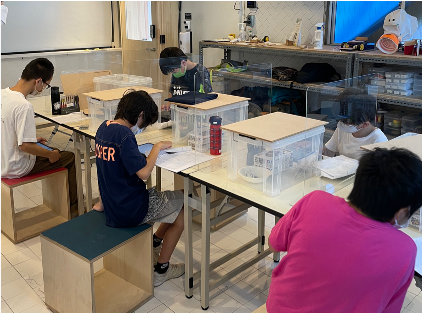 本来であれば、皆で集まってワイワイやりたいのですが、感染防止対策のため、二部制に分けて定員数を絞り、アクリル板で作業スペースを仕切って、製作が始まりました。