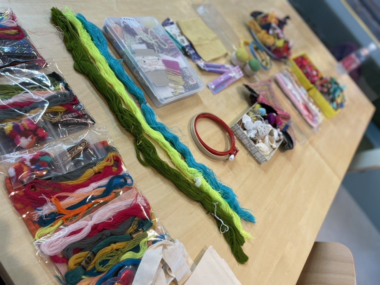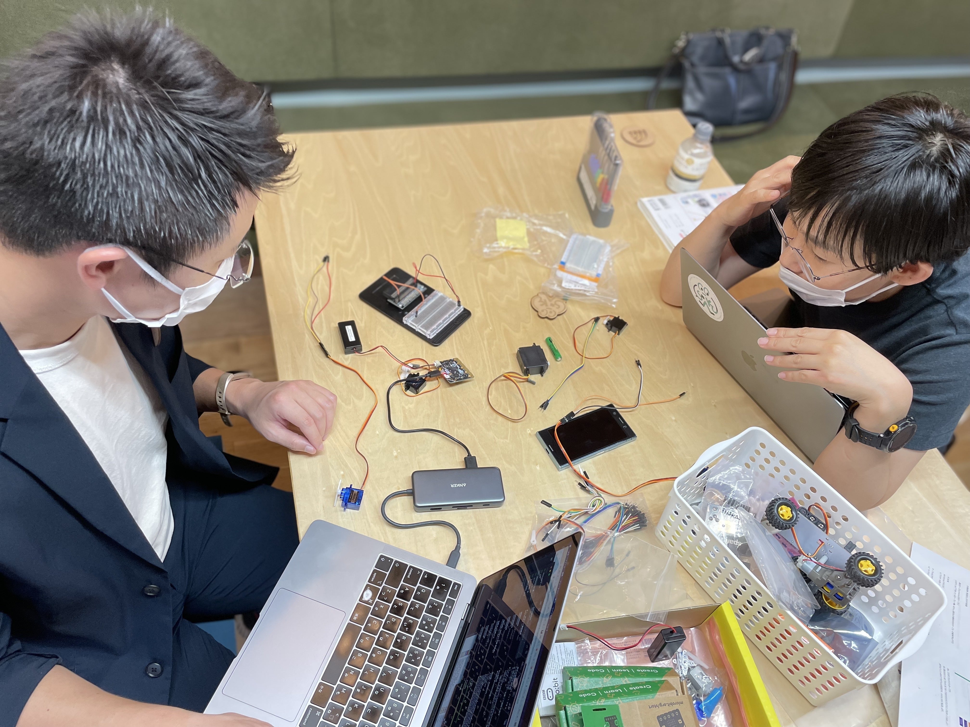いどばたチクチクの会、初開催! 4時間、ずーっとチクチク、チクチク。うだるような暑さの昼下がり、シモキタFABコーサク室では「いどばたチクチクの会」を静かに涼やかに開催しました。電子工作のイメージが強いコーサク室ですが、手仕事コーサクも大人気。「いどばたチクチクの会」という名のとおり、ワークショップではなく、好きなだけ、好きなものを、チクチクお裁縫をする会です。今回は、刺繍作家のPOTATOさんと一緒に、刺繍ブローチなどを作りました。参加してくれたのは、小学生を含む皆さん。ワークスペースの大テーブルの上は、POTATOさんの用意してくれた材料でいっぱいに。タイの民族衣装のハギレがあったり、刺繍糸もカラフルで見ているだけで楽しい〜。一人ひとり、作業に没頭。穴の空いてしまったお気に入りエプロンの補修をしている人も。チクチクの会は、お昼の12時から夕方4時までやっていたのですが、皆さん、なんと休憩もほとんど取らず、ものすごい集中力で、チクチクチクチク。まず、布を刺繍枠にはめ、そこに丸をチャコペンで描き、その中を自由に区切って、その区切りの一つずつを好きな色の糸で真っ直ぐに刺して埋めていきます。他にもいろんな素材(タッセルやポンポン、リボンなどなどなどなど)が用意してあるので、それをくっつけたり、違うステッチで刺してみたりも可。ふわふわのタッセルみたいのができるステッチや、ひたすら玉留めでノットを刺すステッチなど、いろんなステッチを教えてもらいながら、なんとかかんとか皆さん時間内に最後まで終了。意外にあっという間の4時間!皆さん「楽しかったー」と口々に言いながら、自分の作品を身につけて帰って行きました。シモキタFABコーサク室は、こんな風に、いろんな人が自分の好きなコーサクに夢中になっている時間が、日々たくさん流れる場所でありたい、と思います。次回の「いどばたチクチクの会」は、8月9日(祝・月)です。少人数で、感染防止対策をして開催します。参加のお申し込みはこちらから。