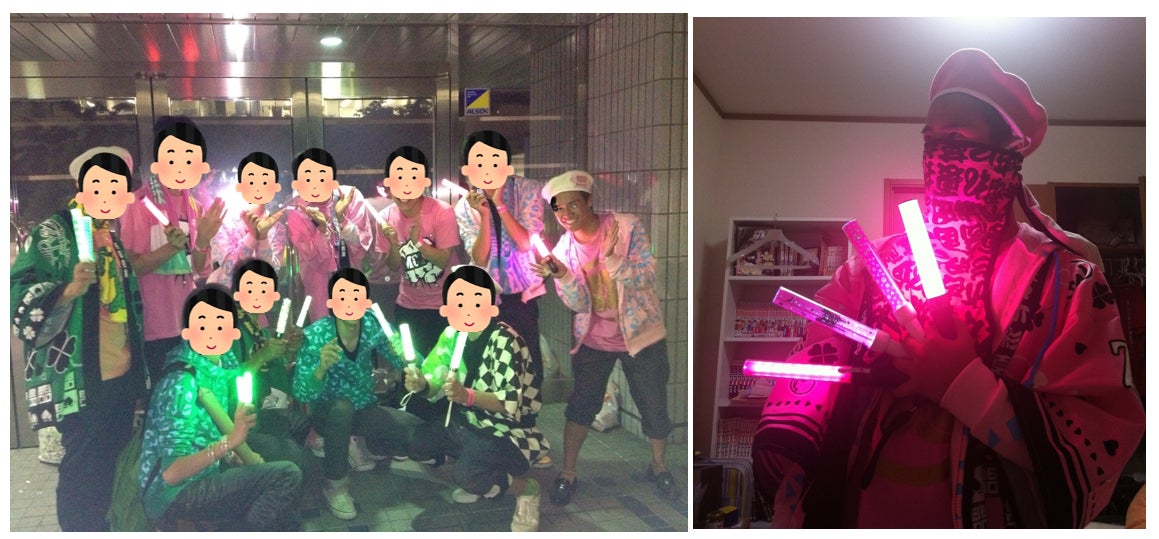 自分の推しメンの色で光らせるのが定番だと思います。
