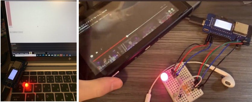 現在は音量を取り込み、大きさによって光の強さを変えるところまで開発が進んでいます。