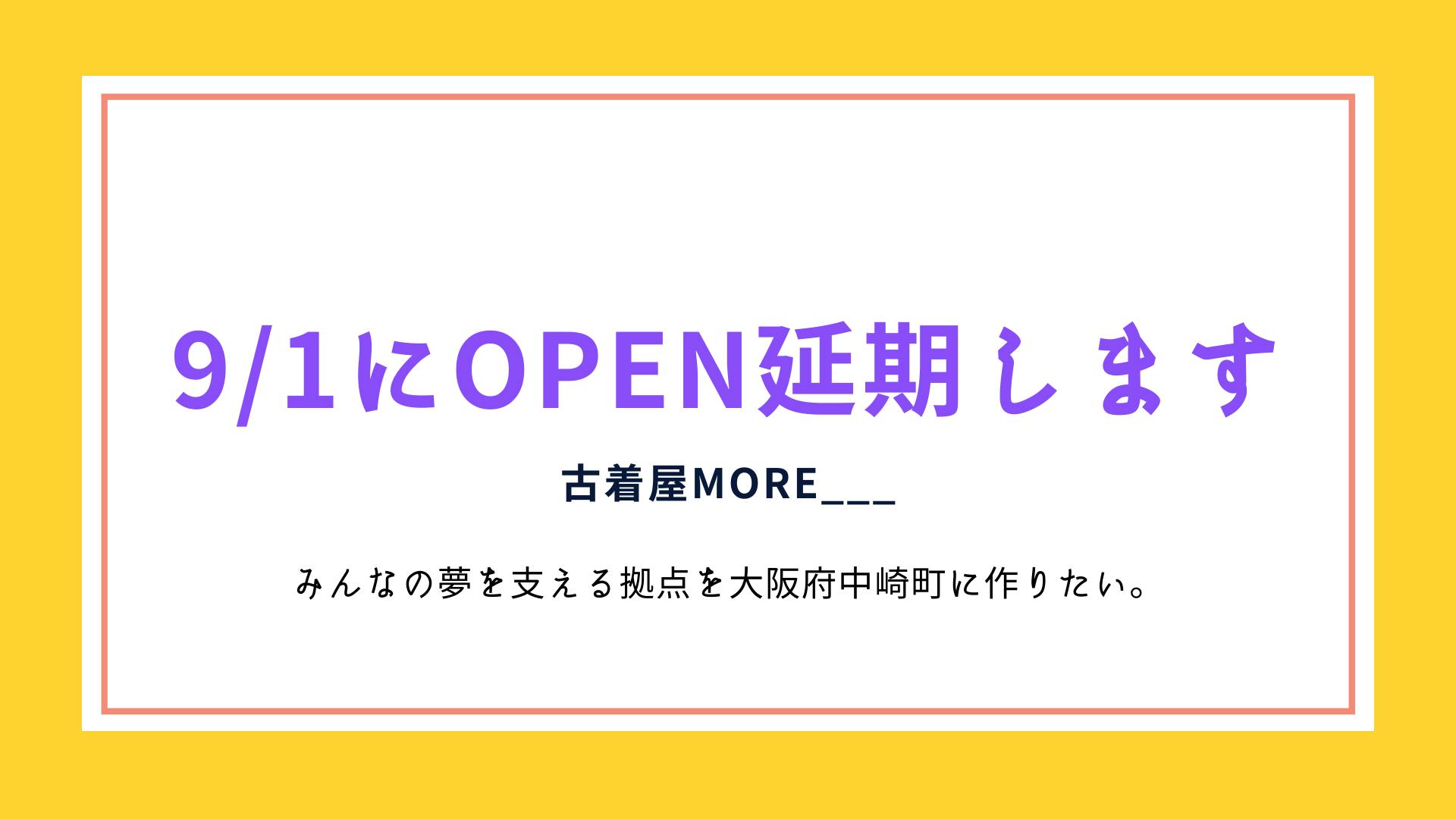 2021/08/12 21:00こんにちは!日本一自信を売る古着屋more___ 木下里紗です。8月14日(土)にグランドオープンを目指して進めておりましたが、この度私たちの準備不足、加えて緊急事態宣言の発令により、古着屋more___のグランドオープンを遅らせることに致しました。近況報告をあまりできておらず、直前の連絡となってしまい申し訳ございません。最新のグランドオープン日程は9月1日(水)です。今後の流れとしては●8月14日(土):プレオープン●8月16日(月)~8月22日(日):DIY期間※販売は移動販売のみとなります。店舗で古着販売は行いません。●8月23日(月)~8月29日(日):デコレーション期間※移動販売・店舗販売両方行います。また、DIYに関する詳細は、次の活動報告をご確認くださいませ!これからは、インスタグラムの方でもどんどん発信していきます!宜しければ、こちらも、フォロー拡散よろしくお願いします。こちら もっと見る