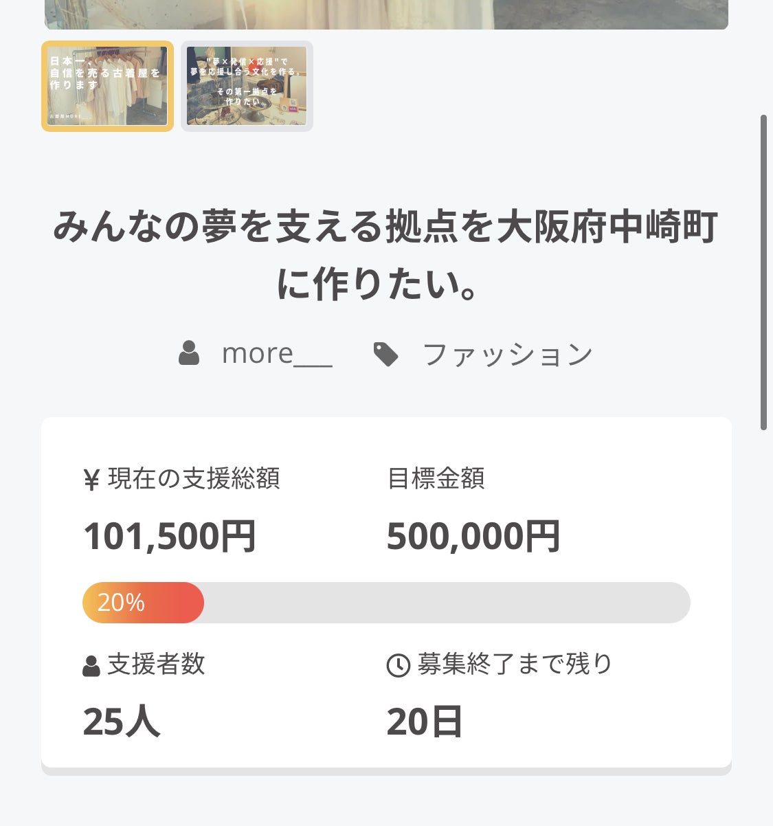 more___の店舗OPENのためにクラウドファンディングを開始しました。