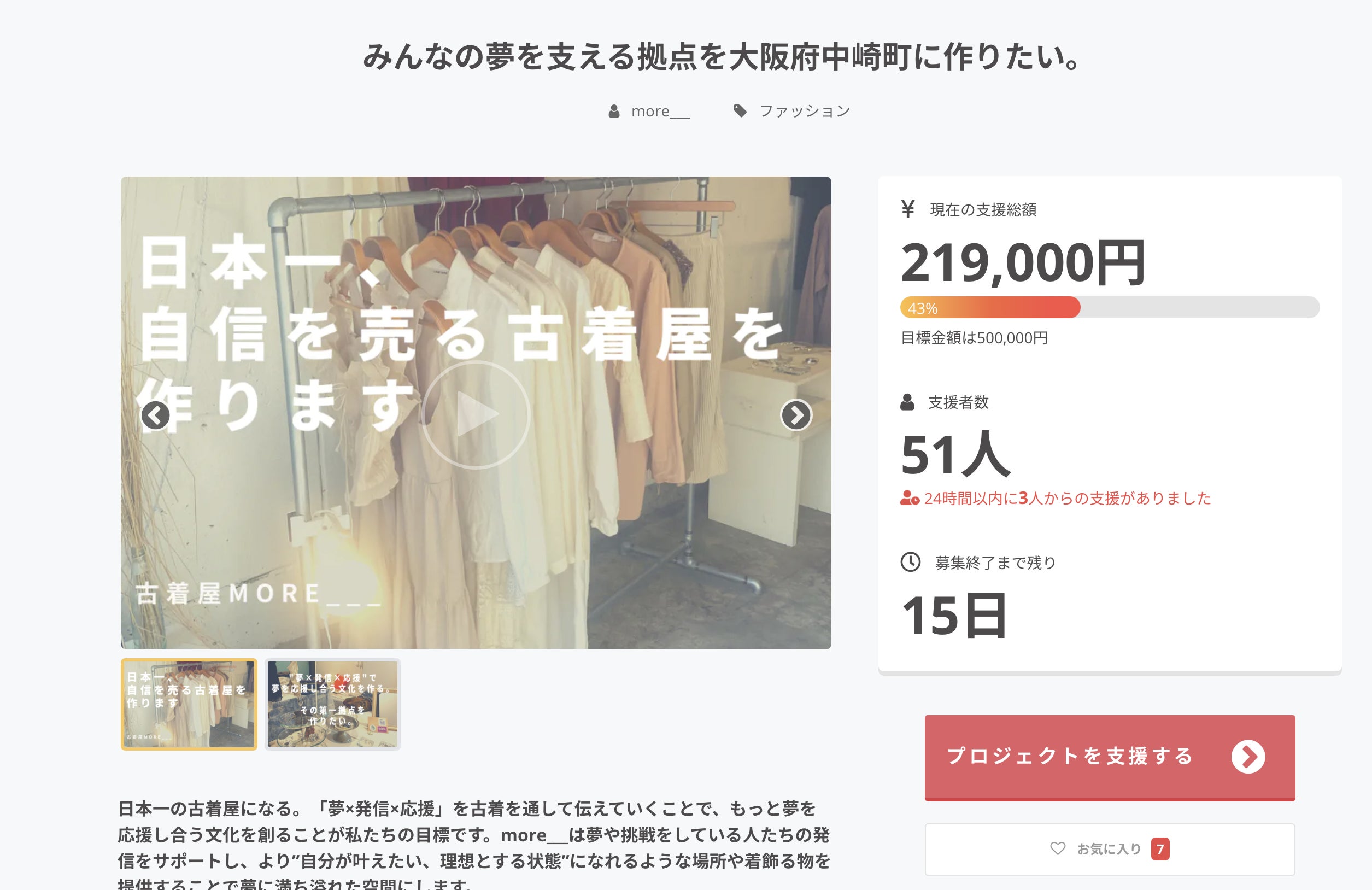 more___の店舗OPENのためにクラウドファンディングを開始しました。
