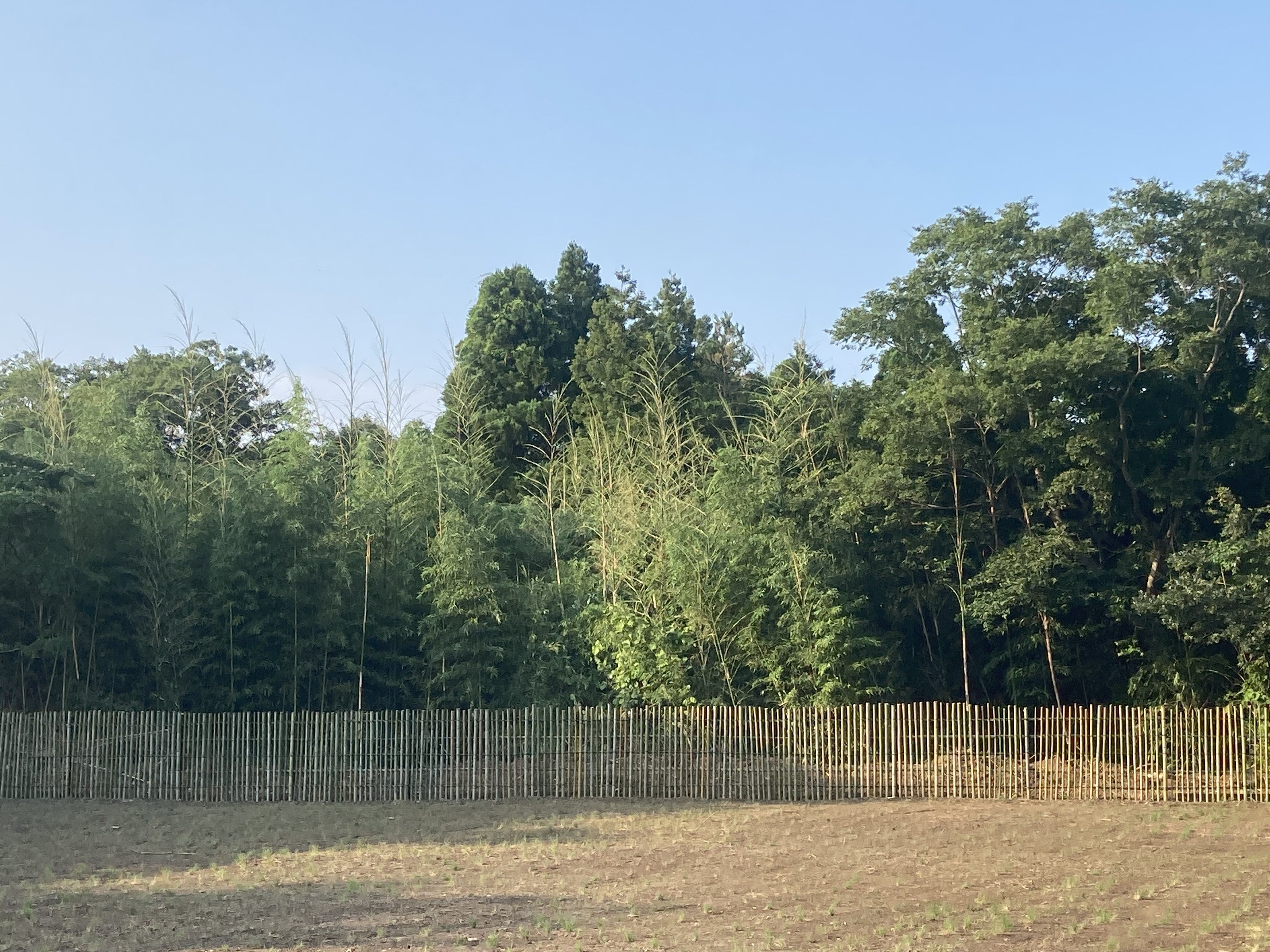 ハンドメイドですが、フェンスを作成中です。これが中々、大変ですが、頑張ってます。この仕事は家族と友人で頑張ってます。手前の芝も育ってきてます!