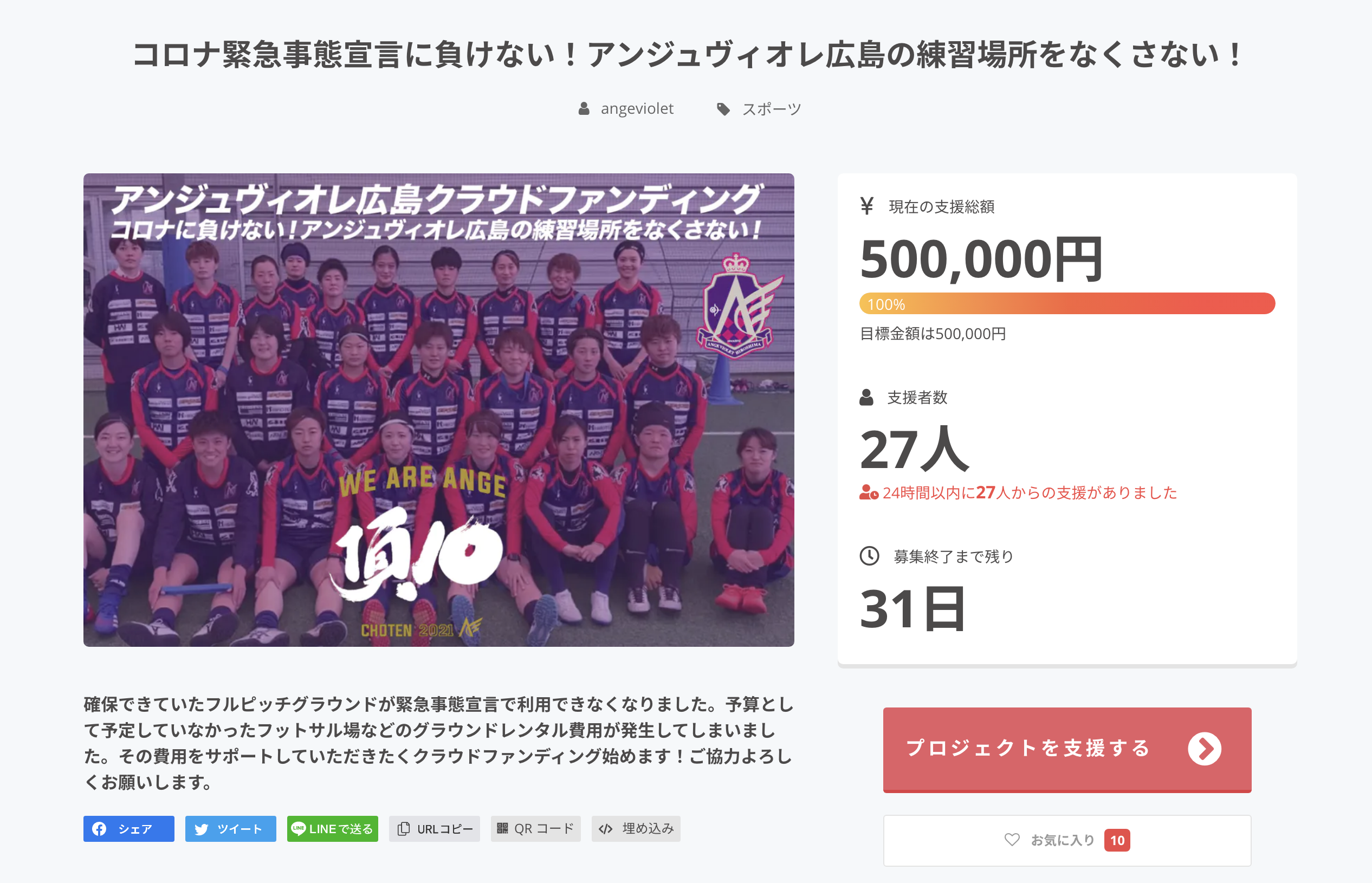 目標金額は500,000円