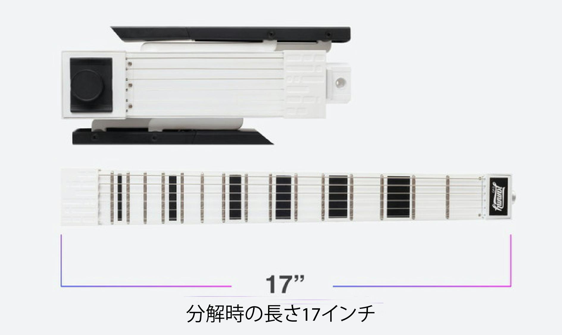 Jammy Eの指板部分は弦の張りが調整できるので、お好みの動作に設定できます。デフォルトではかなり低く設定しています。弊社の調査の結果、大多数のギタリストが好む設定となっています。