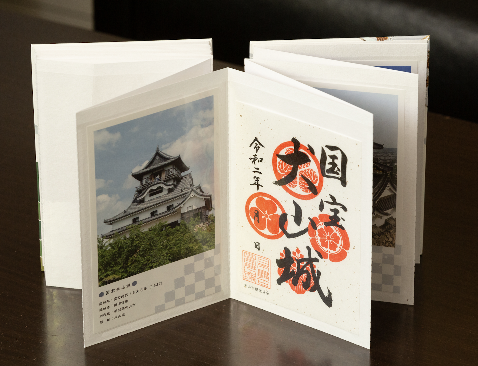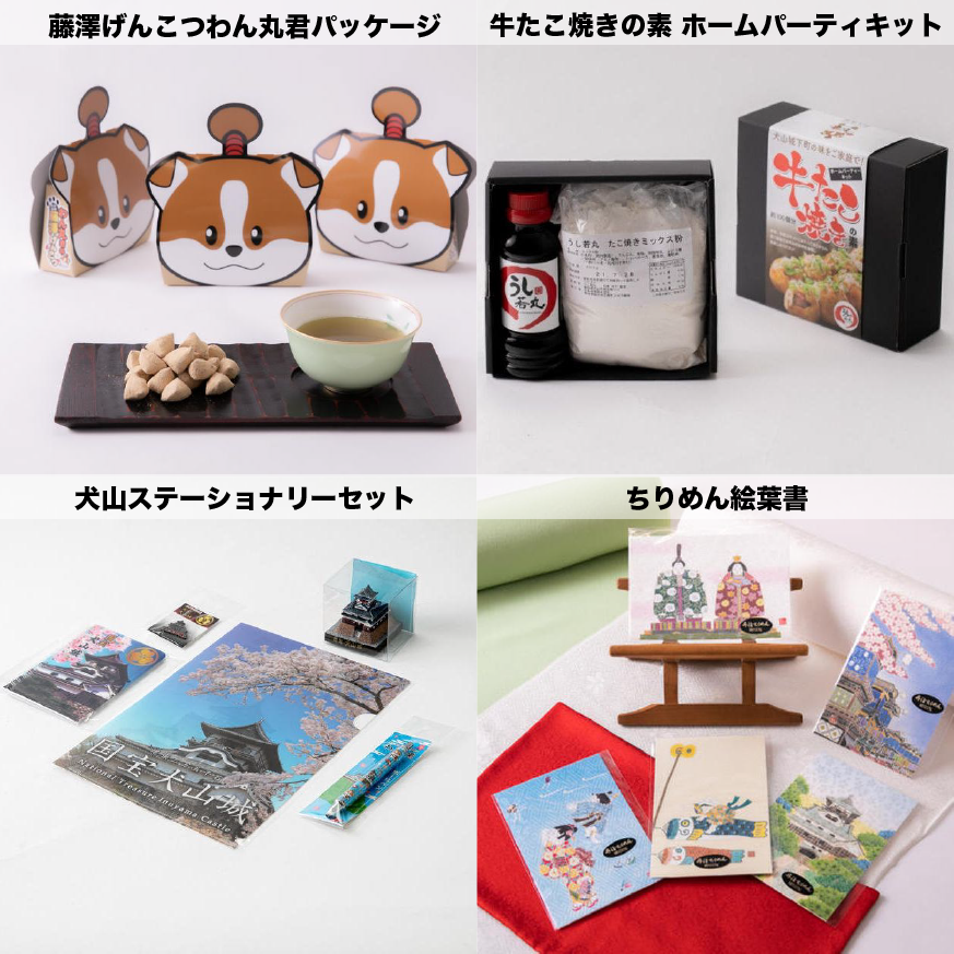 御城印帳に加え、犬山城下町周遊券ペアチケット、犬山特産品1点をセットでお届けするプランになります。