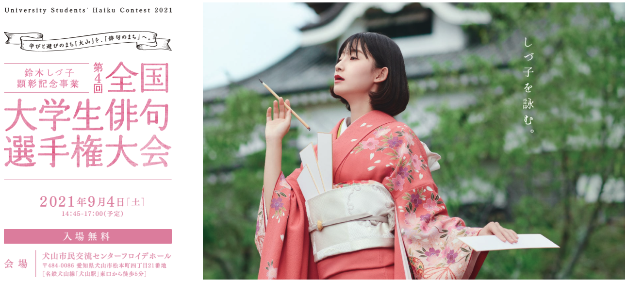 犬山の街を盛り上げたるため、文化の街として来場者増加を狙うため、3年前から犬山市・犬山教育委員会、愛知県、愛知県教育委員会等の後援のもと、スタートした”全国大学生俳句選手権大会”。