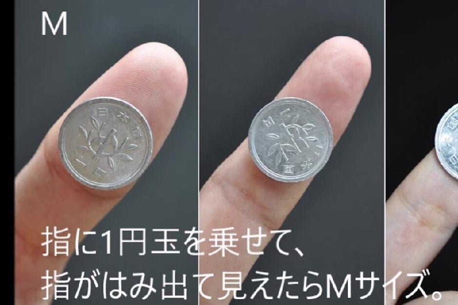 指が1円玉からはみ出て見えれば、Mサイズ。