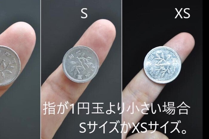 指が1円玉からはみ出て見えなければ、SサイズかXSサイズ。
