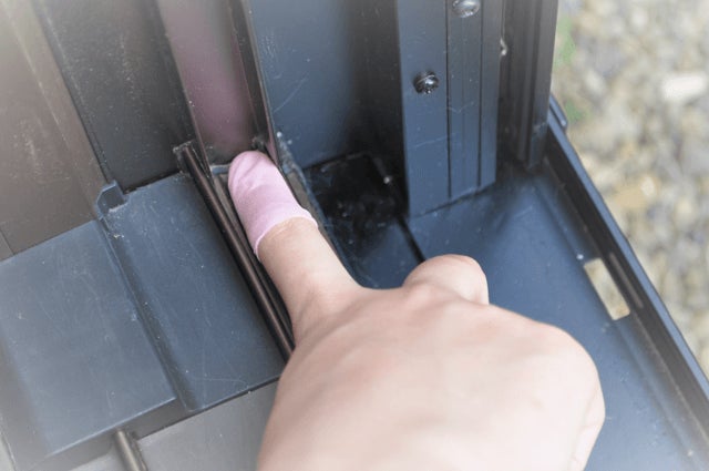 ノビサックの広げた間口に装着する指を入れて下さい。