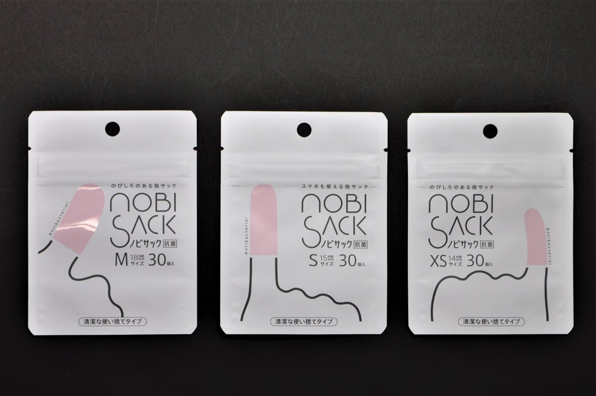 ノビサックはとても薄く柔らかい指サックですので、製品の特長や清潔感をうまくお伝えするため、パッケージのデザインにも多くの時間と資金を費やしました。