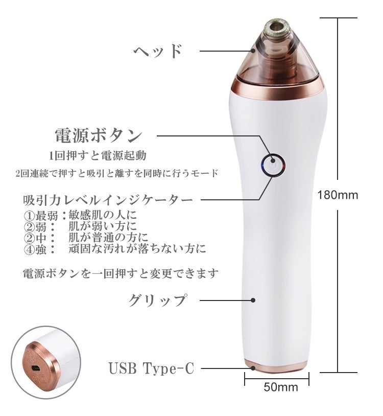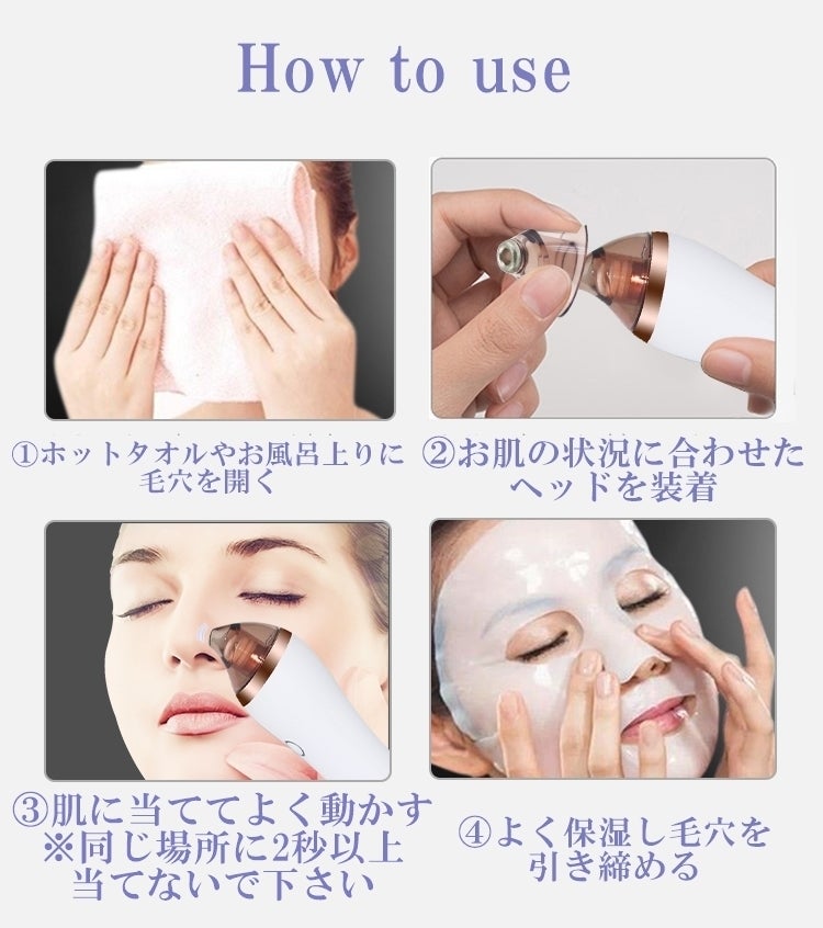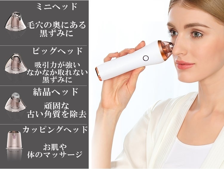 4つのヘッドをお肌に合わせた使い方ができる毛穴吸引機です!