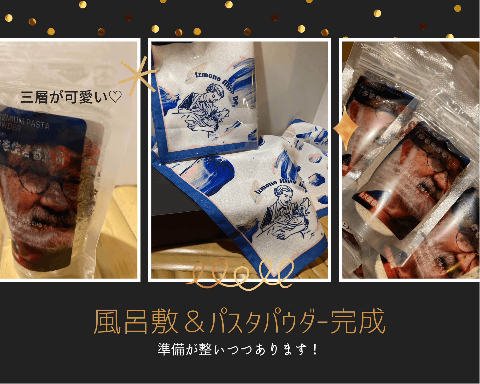 風呂敷&パウダーが完成し着々とご支援いただきました皆様に発送できる準備が整って参りました。