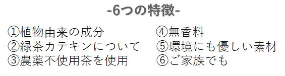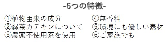 特徴6つ目は、ご家族でもご利用していただける緑茶エキス入り化粧水です。