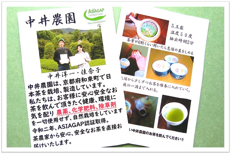 京都・和束町のお茶農家様。安心・安全なお茶を届けたいという想いから「農薬、化学肥料、除草剤を一切使わず」にお茶を栽培しております。