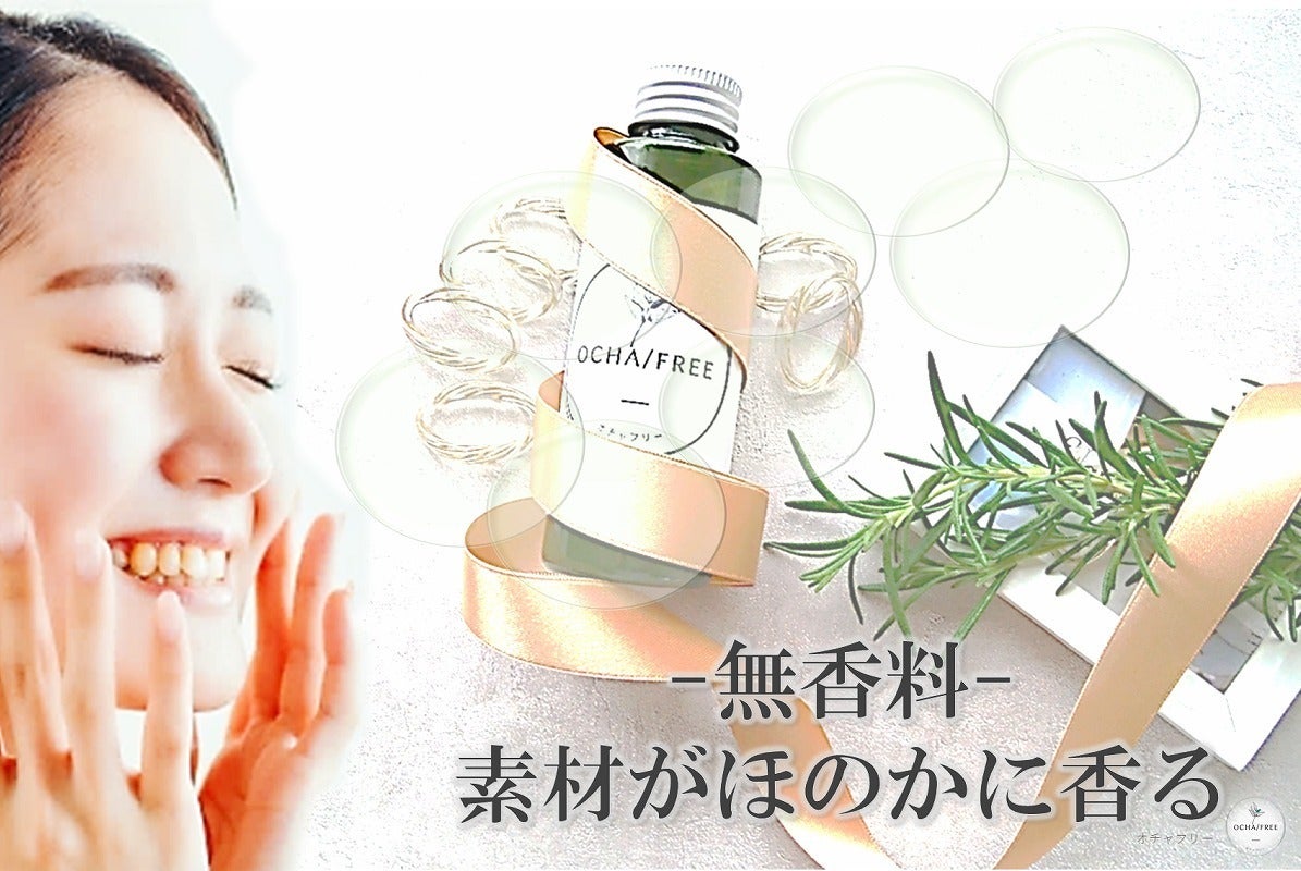 <緑茶エキス入り化粧水は無香料です。>