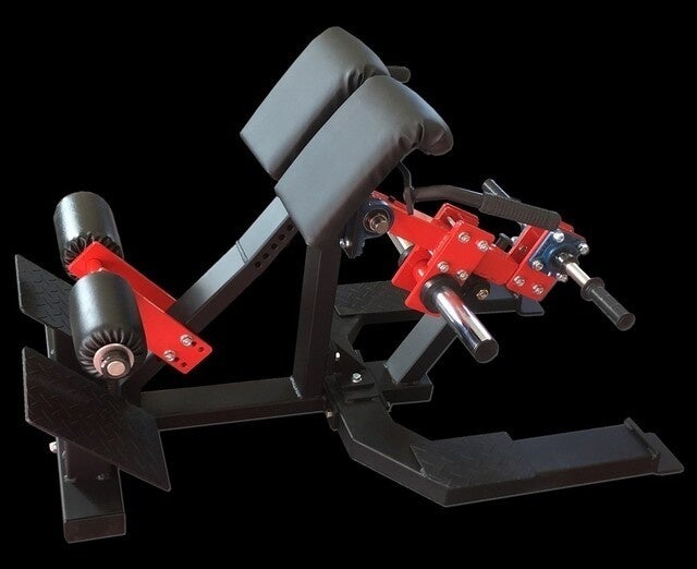 そんな悩みを一発で解決出来るのがこの特注バックエクステンションです。プレートローディング式なので思う存分加重ができ、胸を張ることでバッチリと肩甲骨を寄せて脊柱起立筋にビシビシ刺激が入ります。尻にも効きます。