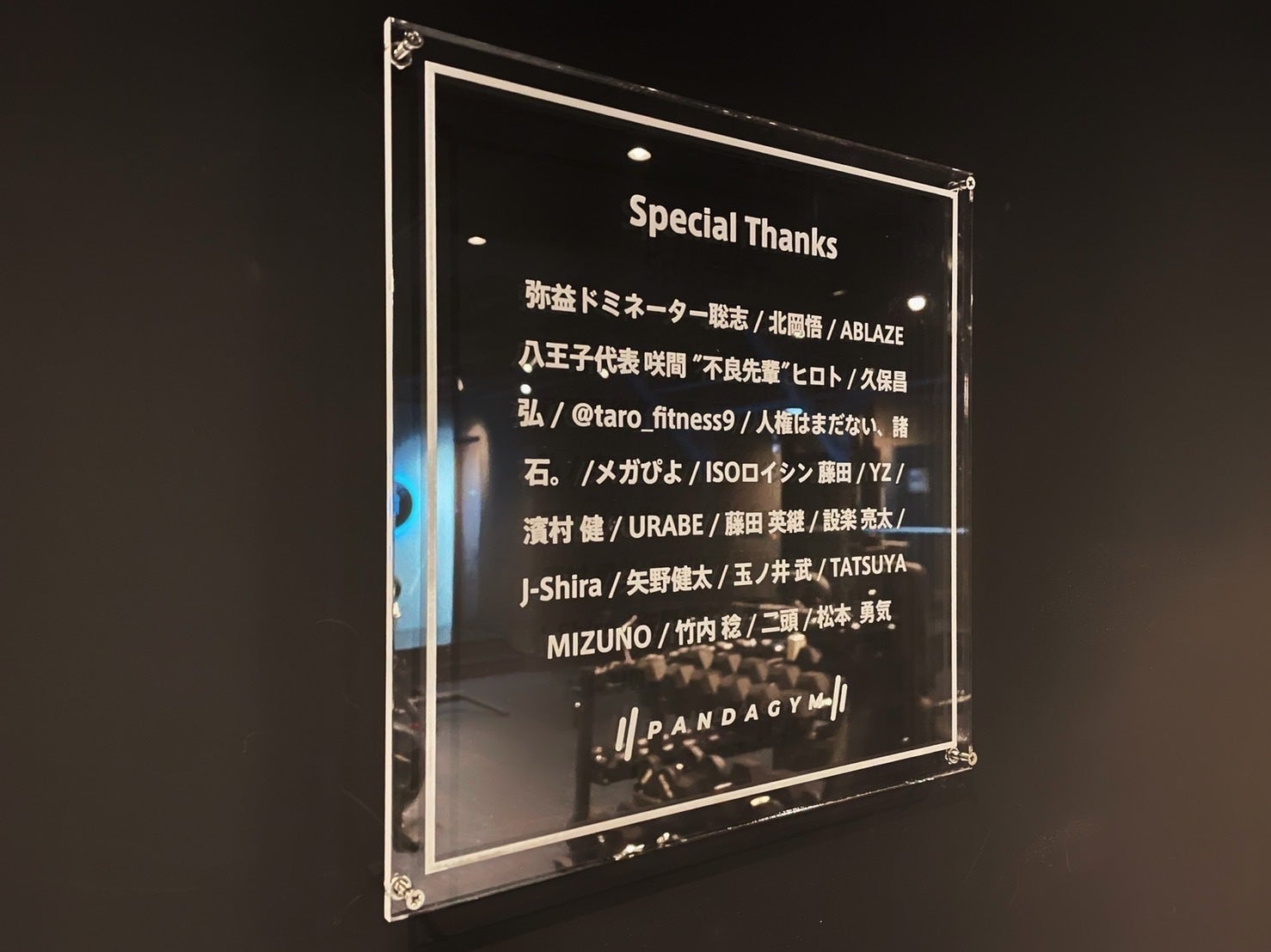 サポート頂いた方のお名前をジムに飾る予定のアクリルサインやHP、ロゴ入りフラッグに記載させていただこうと思います!