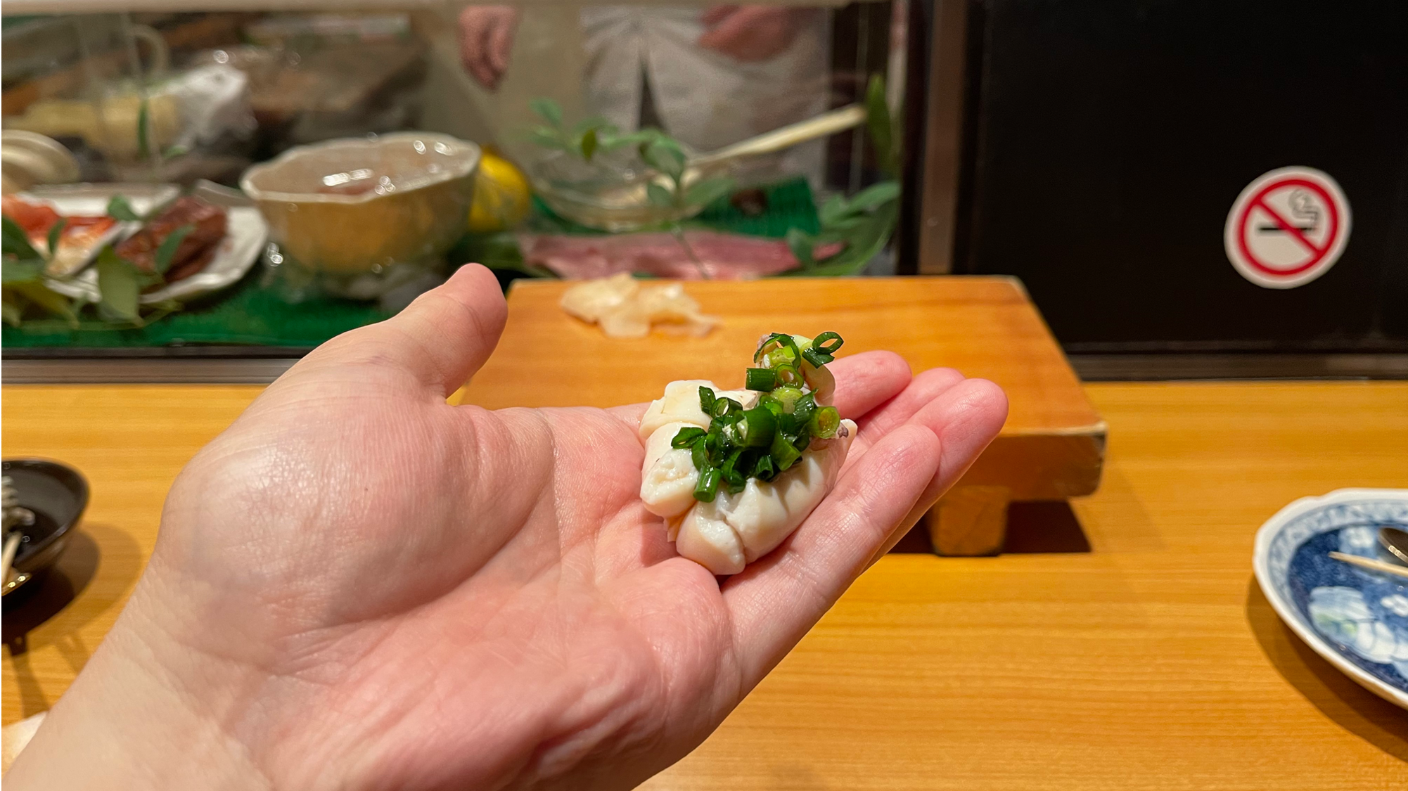 (写真は一番好きだった鯛の白子にスペシャルソースが仕込まれた一貫)
