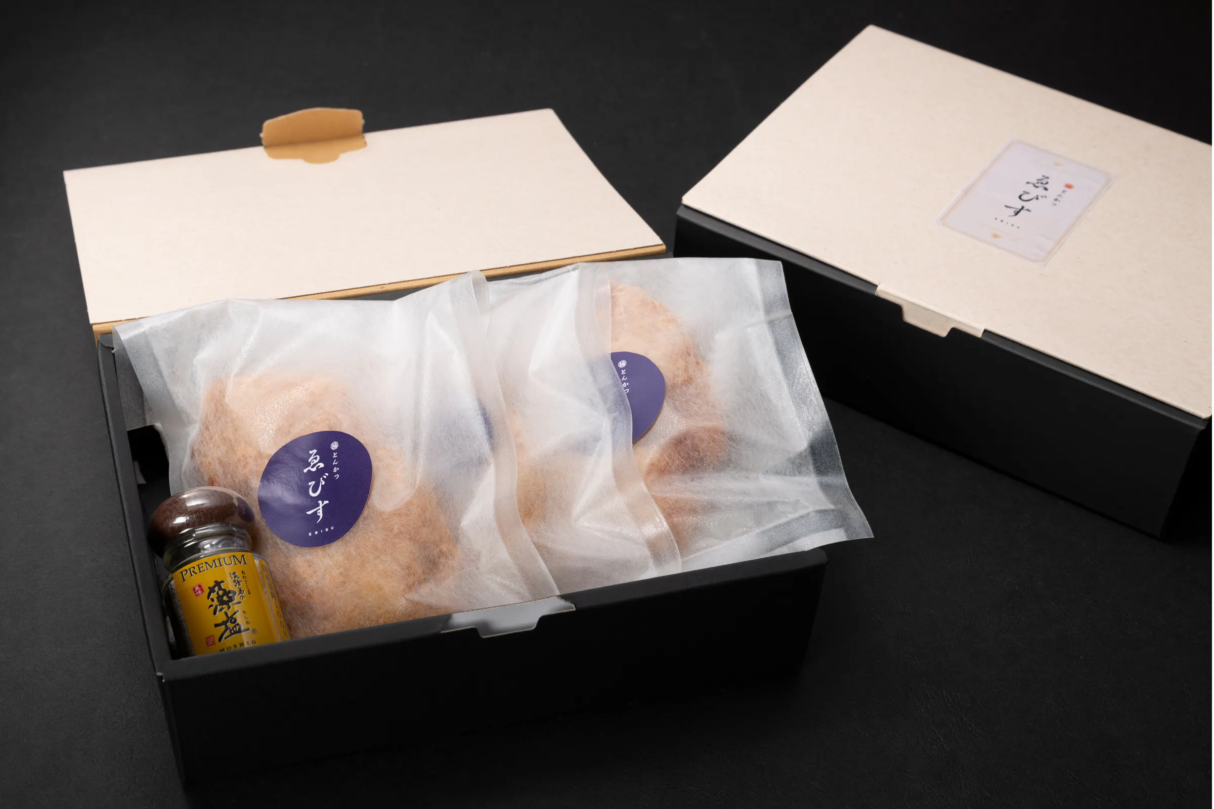 えびすもち豚のロースとんかつととんかつ用の藻塩のセットです。
