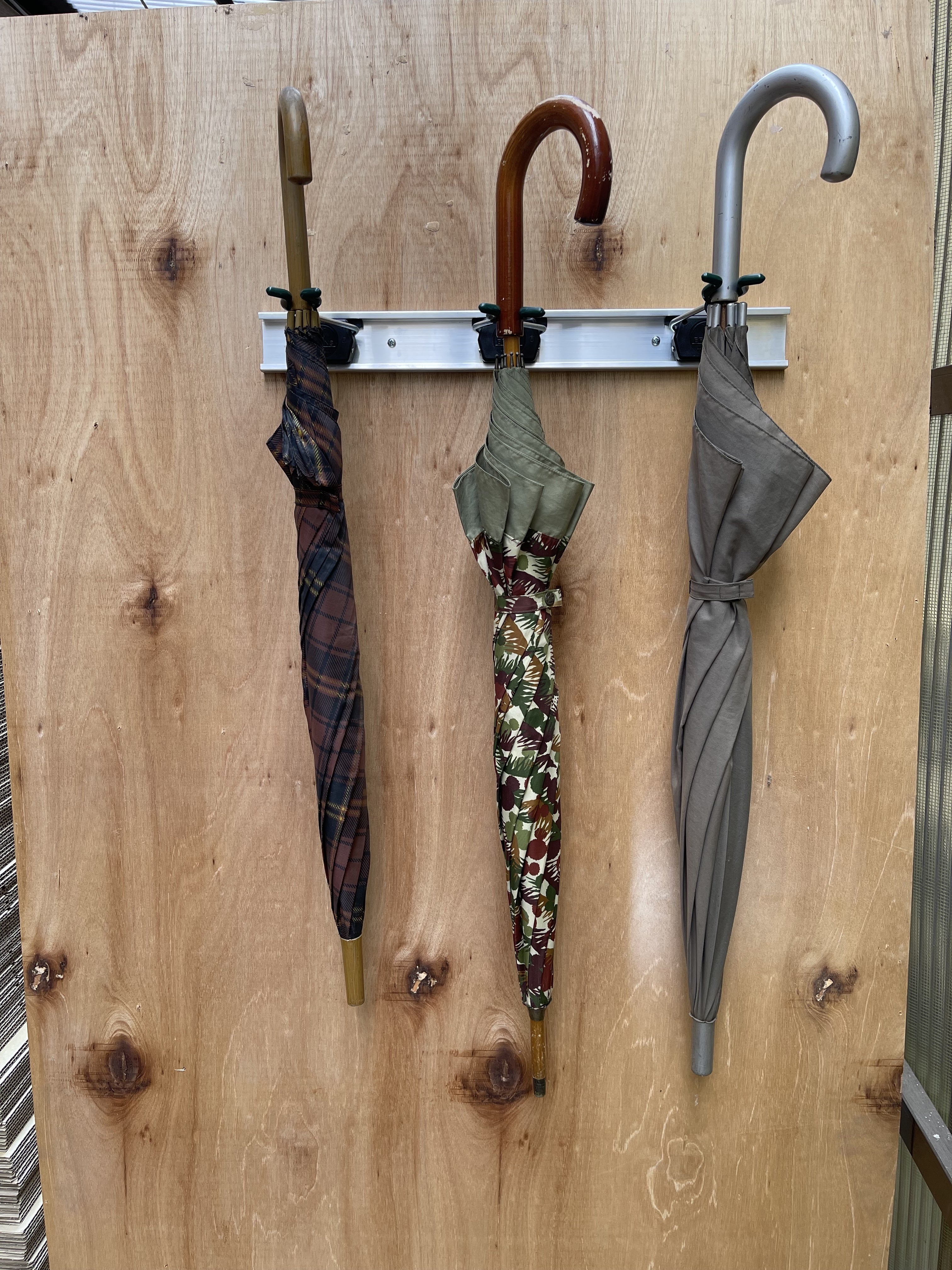 このように、清掃用具、農機具、傘まで壁に吊るすことができます。